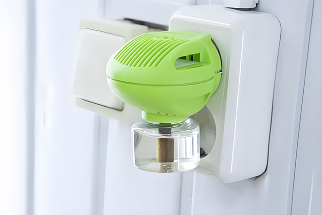 2.使用电蚊香液时,瓶身应垂直于电源插座,切勿侧放或倒放。