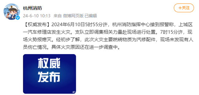 - 杭州一汽修店凌晨发生火灾!京阳消防提示相关从业人员规范用电!