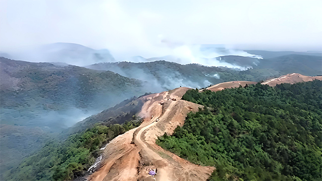 火场南线已经挖掘出长13公里,宽约150米左右的隔离带,有效阻止了火势蔓延。