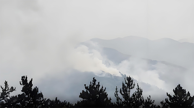 山西省临汾市古县三合镇森林火灾,明火火线长度约1.8公里,扑救难度较大。