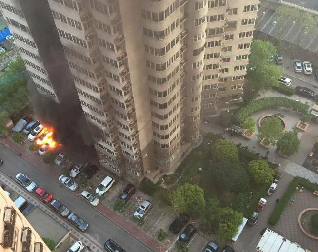 2020年4月23日早上,朝阳区百环花园小区楼下停放的两辆私家车突然起火,火势十分凶猛。道路两旁停满了私家车,挤占了消防通道,导致4辆消防车都被堵在进去的路上,消防员只能在车楼之间接了三十多米长的水带救火。现场大火波及了周边停放的几辆车,其中一辆车烧得只剩外壳,一层住户的阳台窗户也被烧光。