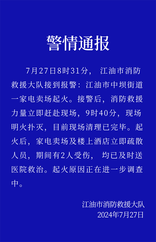 - 四川一商场发生火灾,2人受伤!